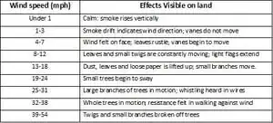 In order to benefit from the energy generating potential of wind turbines, it is important to understand how much wind is available at a given location. A Beaufort scale provides an indication of wind speeds based on various visual clues. While these clues offer indications of the wind speed on the ground, there is likely a greater amount of energy in the wind as the altitude increases. This is based on the boundary layer that develops on the Earth's surface, along with various obstructions on the ground that affect the flow of the wind. The Beaufort scale is provided below:[5]