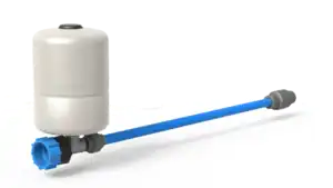 Unlike a traditional ram pump which contains an integral pressure vessel, the Papa ram pump is supplied with a separate pressure vessel and external non-return valve mounted as part of a hose assembly. This separate pressure vessel contains a diaphragm whereby the air cushion is separated from the water. Adjusting the air pressure in the pressure vessel is carried out by using a standard hand or foot pump. The pressure should be set to 0.5 bar below the delivery head pressure (10m = 1 bar); for example with a delivery head of 50m, the air pressure should be set to 4.5bar.