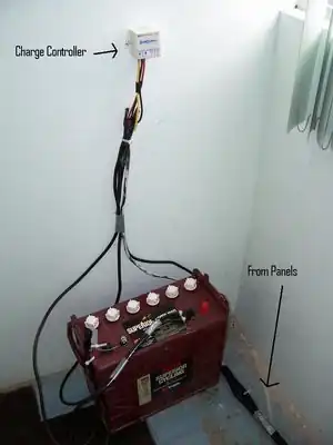 Usually when designing a system, it is ideal to use calculations to figure out the appropriate sizes for the PV array, the charge controller, and the battery, and then purchase the supplies. In this case, the panels and charge controller had already been donated, and sizing the system was simply a matter of plugging in the numbers and seeing if the system was sufficiently sized for our load.