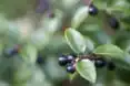 | Evergreen Huckleberry | Vaccinium Ovatum | Eaten commonly either fresh or dried, these berries were highly sought after by indigenous tribes of the Northwest. | Grows in both sunny and shady conditions, with above average amounts of water. However, the more sun this shrub gets the more berries it will produce, but it will not grow as tall as it would under shady conditions. | A small, round shrub that produces dark purple berries, which tend to be bitter. This form of Huckleberry shrub also produces little white, urn-shaped flowers that are utilized by butterflies, birds, and bees alike.[5] | ![]() Figure 2. Evergreen Huckleberry[6] |