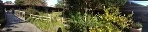 This garden looks like it has not been given any yard work attention in the recent months. The architecture of the facility was well constructed giving the ability for native vegetation to thrive. All vegetation is native to the Northwest environment maintaining the original plan of sustaining native plant life. Vegetation expansion has over taken the facility. Signs of neglect in maintenance can be seen through out the garden. Plants have grown on top of one another and have invaded each other's territory. The stream looks like it inhabits a lot of algae. The position of the garden surrounded by the building allows for a visual sense of serenity. The environment built around this garden stimulates a comfortable environment for the patients and visitors of Potawot. The purpose of sustaining a well kept rehabilitation village still remains.
