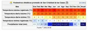 This table shows monthly temperature and rainfall data for San Cristóbal, as well as annual averages and totals