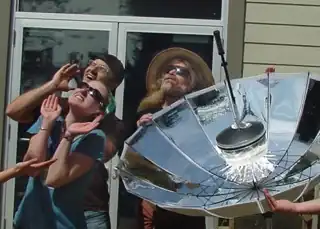 When a fiberglass framed umbrella is opened, the ribs are flexed into a shape determined by the shape of the canopy. A paraboloidal shape for the umbrella canopy can be approximated by calculating the correct dimensions to which the triangular shaped facets are cut and sewn together at the edges. Preliminary research has shown that when the concave facets are surfaced with light weight mirror finished materials, some wedding umbrellas approximate a parabolic curve well enough to function as solar ovens; just able to bake a cake at 300 degrees f.