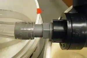 - Then, screw in the plastic tube fittings for the 3/4" connection to the 1 1/2"to 3/4"connectors