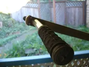 Once the position of the crank shaft is determined on the square bar stock, cut length of the square bar stock to even lengths from the middle. The attach previously removed handlebars to the ends of the square bar to create a pump lever.
