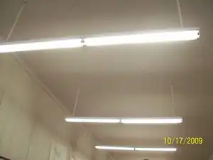 The retrofits were completed by the RCEA on October 2, 2007. The new fluorescent fixtures are smaller than the previous lighting fixtures. There are now twice as many lights in Rookery Books but less overall energy consumption. There are nine light fixtures, which contain two pairs of four foot fluorescent tubes, which equates to 36 fluorescent lights in total. The new fluorescent lights have been running for two years and the store owner has not had to replace any tubes, even though the lights are on six days a week, approximately 300 days a year.
