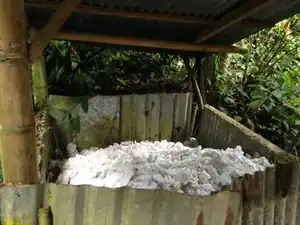 | Toilet paper can not be put into the biodigester, but it can be composted. This is a compost pile for the toilet paper used through regular biodigester toilet use. | |