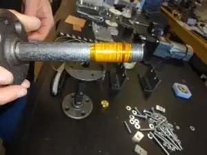 - (v.) Begin coiling tightly all of the nichrome wire around the heating tube: start the coil as close to the threads as possible while preventing any wire from slipping into the threads.