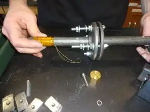 | Brass spacer (or 'bushing') | turned on a lathe: first OD = 1.25x0.25", second OD = 0.999x0.5"1 ¼" OD, inside = 0.5x0.75" ID, ¾" long | |
