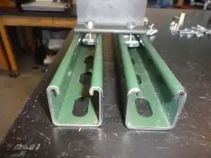 - (v.) Lower the motor mount so T-nuts drop into the strut channel frame (one into each bar of the strut channel frame; similar in procedure to 7v and 7vi).