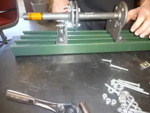 - (ii.) Grease the tapered roller bearing (alternatively, you may grease it immediately before a final tightening of all components). Every surface of the roller bearing should be thoroughly greased—you must force grease into all of the rolling elements of the tapered roller bearing while avoiding air bubbles in the grease. For a demonstration, you may find video tutorials on 'how to grease a roller bearing' online.