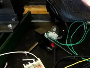 You may now connect recyclebot to a power source. (See Photo 39) As the heating element is warming up, pay attention to the temperature that is being registered by the temperature controller. If the temperature drops rather than rises, you will need to disconnect recyclebot from the power supply and switch the nichrome-attached copper wire connections (simply swap one connection for the other).