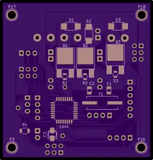 Front of control boardNote that components will be soldered on both the back and the front of the board.