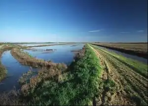 The Lake Thompson Watershed, located in southeastern South Dakota, has lost the majority of its wetlands over the years to increase agricultural production, for which 90 percent of the land is now used. As a result of increased agricultural production and the loss of wetlands and other retention space, the region experienced severe flooding around several lakes from 1984 to 1986 that led to crop, property, and road damage. In an effort to reduce the frequency and duration of major flooding, both governmental and non-governmental organizations created a wetland restoration plan within the watershed that included restoring drained wetlands on public lands; acquiring new land to restore wetlands; developing conservation practices on private lands; and offering incentives to prevent further drainage projects. In addition to decreasing the threat of flooding, many of the restored sites once again function as wildlife habitat.[6]