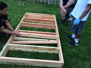 Build the frames for the sheets of plywood using wood screws and the cut pieces of 2x4's as well as the full length pieces. While building the frames measure each piece of lumber on the inside of the frame to be 16" apart, or less, from each other.