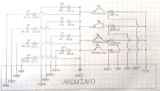 In order to interface and program the Arduino the "Arduino IDE" must be downloaded onto a computer. The Arduino IDE can be found at https://www.arduino.cc/en/Main/Software and is available for Windows, Mac and Linux. Download and install the Arduino IDE. After the Arduino IDE is installed, connect the Arduino UNO Microcontroller to the computer via a USB cord. Once the Arduino is connected, open up the Arduino IDE program. At the top of the program, open the drop-down menu titled "Tools" and select "Board" and then select "Arduino / Genuine UNO". Next, from the same "Tools" drop down menu, select "Port" and the select the port that the Arduino is connected to. If there are multiple ports listed make a note of the ports, then disconnect the Arduino and see which port disappeared, then reconnect the Arduino and select that port. The Arduino is now ready to be programmed. Copy Paste the Arduino code, located after this paragraph, into the Arduino IDE program. Select the "Check Mark" at the top of the screen to verify the code. The sketch will compile and should not result in any errors, if any errors are detected, make sure that you copied the code exactly, including all of the code located between the bolded "Arduino Code Starts Here" and before the bolded "Arduino Code Ends Here" statements. Next, click on the "Right Facing Arrow" icon that is located next to the verify button, that will transfer the code to the Arduino Microcontroller. The Arduino should now be programmed. Disconnect the Arduino from the computer, verify that all wires are correctly connected to the correct pins on the Arduino as instructed by the schematic, then connect a power source to the Arduino, the circuit should now function. The coding for the Arduino is displayed below, copy paste all of the code after the bolded "Arduino Code Starts Here" and before the bolded "Arduino Code Ends Here" statements.