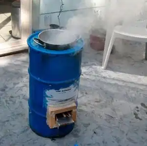 - Heat exchanger: a tubular metal shield that forces hot gases from the chimney to pass over the sides of the cooking vessel (like the one used in the Rocket stove mass heater).