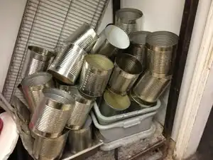 During the first steps of our project our potential roof materials included racing slicks and aluminum cans in addition to tin cans. The racing slicks were very time consuming to cut and could potentially leach with the rainwater. The roof needed to be compatible for a rainwater catchment system, therefore runoff from the roof could not be potentially contaminated. After calculating the surface area of the roof, aluminum cans were determined to be too time consuming. The prototype we built, with the first 2 tin cans we collected, were cut in half and screwed into a piece of plywood. This was or first positive result so we stuck with it and began collecting size 10 cans. We figured we were going to need a lot of them and noted it would be more efficient to cut each can once.