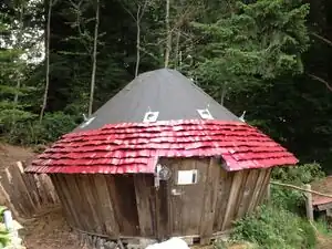 The Yurt has excellent aesthetics and appears solid and still standing. The roof has a few areas of rust on it, but for the environment it is in it is a very small amount of rust. The roof could be refurnished the rust deterrent used has begun to where off, when talking with the employees of CCAT, it was mentioned that they were planning on going over the roof with the rust deterrent in the near future if time permitted. The bottle lighting system is working wonderfully there is variation in the levels of the liquid, but none of the bottles appeared to be wanting of a refill. The small portion of bleach added to the bottles works well to keep the algae and mold away as none was visible while looking at them. There are no noticeable leaks in the roof at this time. The solar lights in the yurt are working very nicely and light up the room well. The battery was replaced earlier this year, in July. The replacement was a used battery, but it is working well it just needs to be maintained occasionally. The inverter in the yurt is out completely and needs to be repaired or replaced. The lights run on direct currents and the inverter is used to convert the direct currents to an alternating current, so it does not affect the lighting system, but it would be good to be repaired. A few of the employees at CCAT mentioned that it would be nicer to have a deeper cycled battery for the solar system in place. Overall, the yurt is still standing, the roof has no major leaks and the solar system is hooked up and the lighting works. The roof could be re-coated with some rust resistant overlay, and the invertor needs to be repaired or replaced.