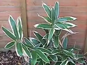 One of the more than 1000 species of bamboo. A very large leaved plant, the leaves of which die back white towards autumn to giving it a striking variegated appearance. Grows to around 1.5 metres.
