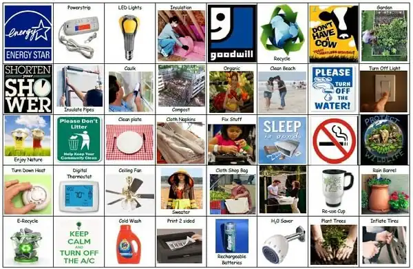 These are good deeds you and your family can do around your home. As most of them save physical resources, they not only shrink your environmental impact, but they also will save you money. The white bordered pieces: