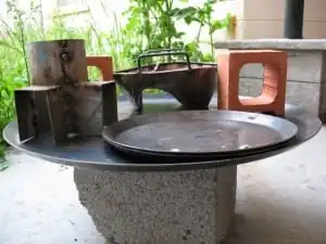 As specified in the EPMC, a heavy-duty metal table (130cm x 99cm x 78.5cm) capable of supporting several hundreds pounds was procured to serve as a stove base. The table was sanded and cleaned to eliminate rust.
