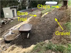 - Add mulch or gravel to the top layer of the pathway at points where it has become muddy or uneven.