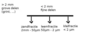The solid constituents of the soil are more than 90% mineral particles of different sizes, ranging from a pebble to a microscopic particle (clay). The particles are classified according to their particle sizes (called fractions). We use the micron as a measuring unit. A micron is 0,001 mm or 1/1000th of a mm and is indicated by the Greek letter µ (pronounced mu). In the soil, one can distinguish the following fractions using a sieve (soil sieve):