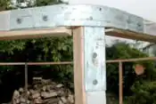 The assembly goes quickly once all the materials are gathered and prepared. Making the brackets, however, took a whole day of poundage with an 8lb. sledge and was no easy feat. It would be more economical to buy the brackets (if you have a job and hadn't dumpstered free steel conduit).