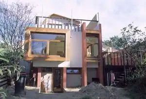 In 2001, my partner Lena and I were faced with the prospect of living in a dark and dingy 1930's duplex "one of a pair" solid brick dwelling built in 1930, renovating it, or buying another house. The old house had a maze of small pokey rooms. We viewed the high cost of selling and buying property, where a lot of money goes to the "middlemen and the taxman", as a waste of money. We were really keen to make maximum use of the sun for heating and natural lighting, and decided to go ahead with renovating. We prepared a detailed brief covering our requirements, with a strong focus on low environmental impact features. After discussing the project with Andreas and Judy Sederof from Sunpower Design, we felt confident that we could achieve what we wanted, although the site and the existing dwelling presented challenges. It soon became clear to us that the expertise and ideas that experienced "sustainable and solar efficient" architects provide is invaluable.