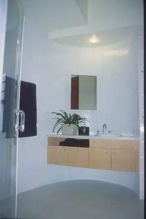 After the renovation every room was changed. The front living room became the master bedroom with an ensuite and walk-in-robe attached. The rear of the building was removed. The streetscape and the connection to the neighbouring duplex were maintained. The design incorporates the use of courtyards and glazing on the north face to maximize solar gain. Extensive double glazed roof glazing over the dining/living area also brings light in from the north, which compensates for the lack of windows on the northern party wall. In summer, all the north-facing glazing can be shaded my sails and blinds. This is essential to prevent the house getting too hot when the sun is strong.