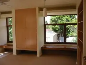 We are amazed by how effective the passive solar design is. On a sunny winter day, the rear of the house is so warm that we don't need the heater on. In summer with all sails and blinds in place, the house stays cool. The double-glazing has been a great success in both regulating the temperature and keeping noise out. We use no soft furnishings over the double glazed windows as they restrict solar access if left closed during the day. Curtains are used on rooms where privacy is required.