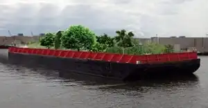 Swale is a floating food forest launched in Summer 2016 in New York. The project is spearheaded by Mary Mattingly, the visionary behind such projects as the Waterpod, Flock House, and WetLand. This project includes many of the same designers from the previous projects and, in addition, has new team members, a designer, and contributors. Projected interactive environmental art is coordinated by BiomeArts. The barge measures 130ft x 40ft.