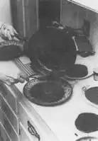 This whole process had started an hour earlier when Deidra and I began cooking the taffy. While the two batches of candy were heating up in the two heavy iron skillets, Lois remembered the good times she had when she was a child and when there was a taffy party at her house. "One time we had a taffy party and someone got tired of pulling the taffy and they tossed it out the door. The next morning I saw this old sow that had the piece of taffy in her mouth. She was just a-working on it and she couldn't swallow it.