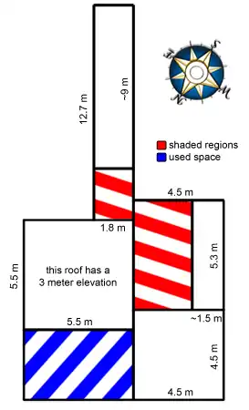 Our first task was to determine the energy demand of the business. We used the highest energy bill of the past year, which also showed a graph of energy use over the past two years. We also completed an energy audit of the store to verify the information. The grocer's house is connected to the same utility meter as the tienda. Commercial businesses pay a higher tax on energy than do residences, so the grocer hopes to put the tienda and house on separate meters and use the PV system to power only the tienda. The wiring is already in place to do this (see the gallery). It was difficult determining exactly how much energy is used in the house and how much in the tienda, but we compared the bill to the energy audit and feel confident that our estimate of 9.45KWh/day is close to the true demand.
