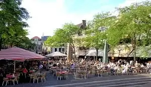 The Hague car-free city-centre. The Hague, in the Netherlands, has a huge and wide car-free city-centre. As a result, one may see lots of bicycles, pedestrians, some trams, people getting around and buying in the local commerce. This type of urban policies provide citizens safety, humanity, air quality, much less noise, and quality of life. July 2014. Author: João Pimentel Ferreira