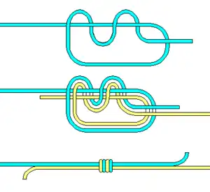 The water knot (also tape knot, ring bend, grass knot, or overhand follow-through) is a knot frequently used in climbing for joining two ends of webbing together, for instance when making a sling.