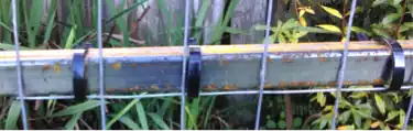 | 3 | Attach each trellis to the railing by wrapping zip ties around the wire and crossbar. Each trellis should be attached to the top 3 crossbars in 3 places. | ![]() |