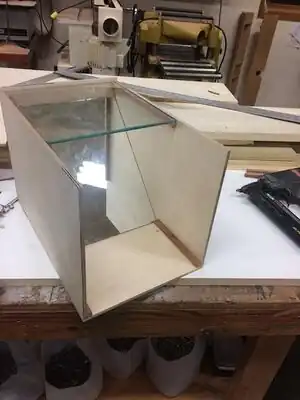 Screw all the sides together to create a box and put the viewing glass and mirror in place.
