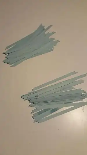 Cut out boning pieces from card paper. 60 trapezoids 1cm thick, 9" long pieces with sides at 45-degree angles and 60 rectangles 1cm thick, and 9" long.