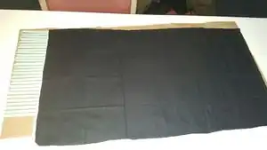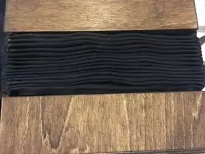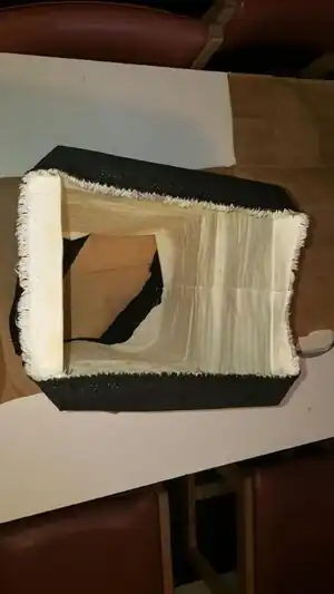 Once the glue is dry, glue the black fabric to the white, with boning sandwiched between.Glue the trapezoids from the first section to the last section, which should both be 4.5"x15", then glue the black fabric onto the last section.
