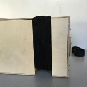 The bellows would not only give a vintage feel to the camera obscura but it would also allow the camera to compact into a smaller size. This meant that the camera could be both easily stored and easily carried. The bellows would also allow users to focus images by allowing them to manipulate the focal length. This would be done by extending or compacting the bellows, which have the lens attached to one side, until the image would appear clearer. The bellows also helped reduced a bit of weight from the model by using fabric bellows over more wood. The original plan was to make a smaller box that would somehow compact into a larger box but that would cost more and also increase the weight. The team wanted the design to be as light as possible without sacrificing durability.