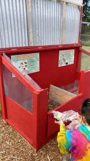 The objective of this project was to develop a cost-effective composting system that is durable, educational, and safe for children gardeners to use at Catherine L. Zane Middle School in Eureka, CA. As of spring 2017, teachers at Zane had tried to adopt a couple of different composting systems for the garden, but they had to be removed for a variety of reasons. The school requested a compost system that would be educational, safe, and able to accommodate garden waste, woody debris, and organic waste from the cafeteria. The new composter at Zane Middle School is a 2-bin system. The left-side bin is used for depositing fresh organic matter, while the right-side bin houses maturing compost. The structure is painted with weather-resistant paint, which prevents the wood from warping and postpones its decomposition. It is equipped with educational posters, and is lined with hardware cloth to detour rats. Each bin has a front door to encourage ease of access, although the corrugated steel roof is too heavy. In the future, a plastic or wood roof should be used.