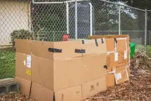 Mark Out Garden Area The area and frame of the compost was a prototype in the garden. It was carefully measured and marked out with cardboard boxes. This gave both us and the client an idea of how big we wanted to build the compost.