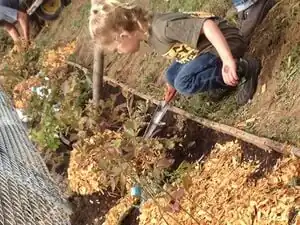 Figure-28: Toddler applying layer of mulch on blueberry bed. |
