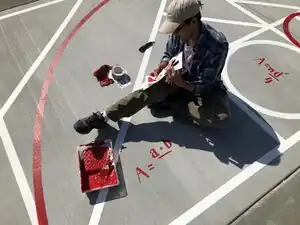Minh Truong- Holding the opposite end of a chalk line being used to mark out where the duct tape and paint needs to go.