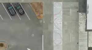Use duct tape/outdoor tape to line the outsides of the existing paint to prepare for a re-coat of the straight white lines. The margin between the tape should be 2 inches.