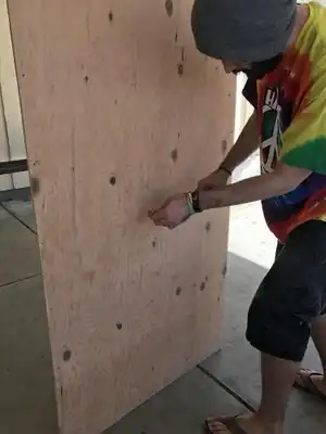 Knock off the hazardous ends of the screws with a hammer once done with design. This prevents any injuries to students from sharp screw ends.