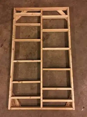 Cut and attach 1" x 2" pieces of furring strips to make the frame for the standing locations. All measurements should be to the center of each piece of wood