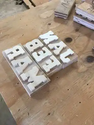 Cut out outlined Roman Numerals from 1/2" Plywood. Sand and round all of the sharp edges. Keep the numerals that are being used in one stamp together to ensure a similar size fit.